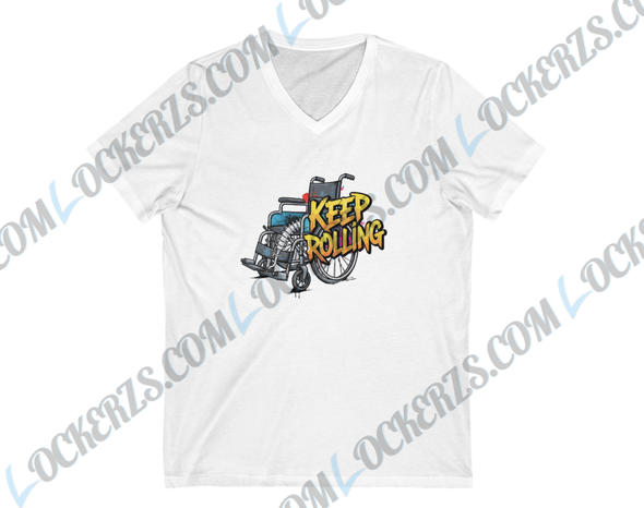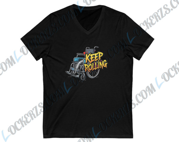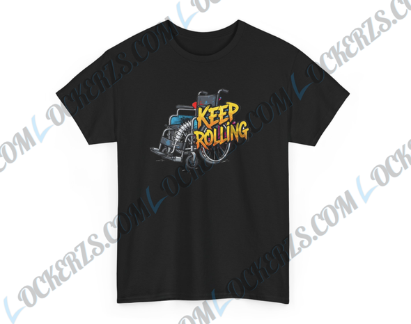 Embrace the spirit of perseverance with our unique “Keep Rolling” T-shirt. This isn’t just a shirt; it’s a statement of strength, determination, and unwavering spirit. Featuring a thoughtfully designed logo of a wheelchair with a spinal cord nestled within, this tee beautifully symbolizes the journey and resilience of individuals in the spinal cord injury community.