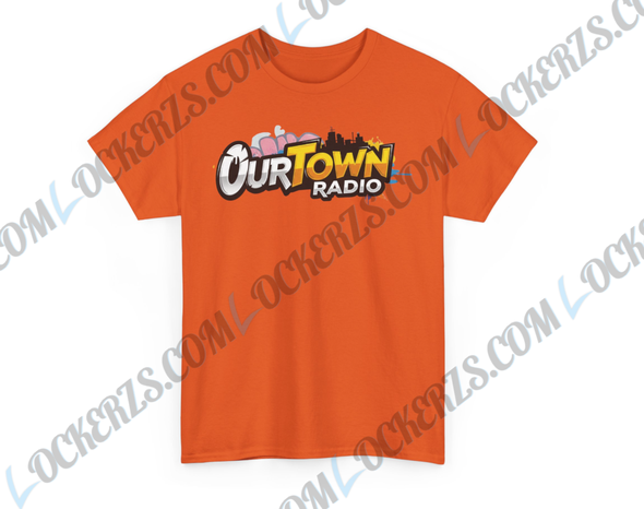 This design features the bold “OUR TOWN RADIO” logo with a vibrant cityscape silhouette peeking out behind it. The graphic gives off a cool, urban vibe that perfectly represents the diverse music found on the station. Made from a comfortable and durable cotton blend, this tee is a great way to show your support for independent artists.