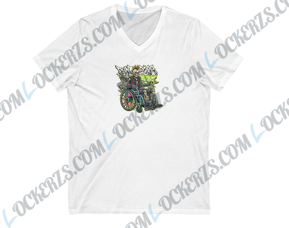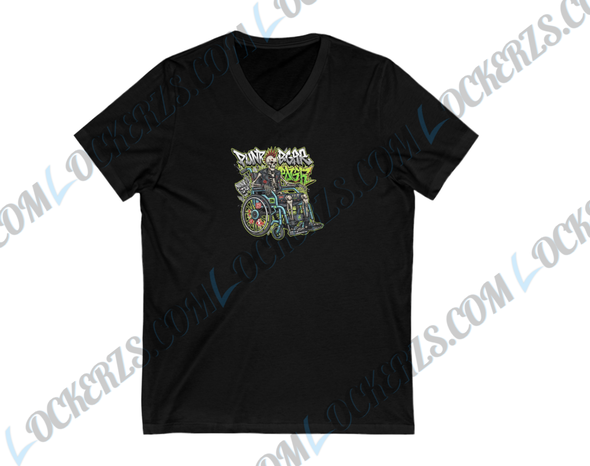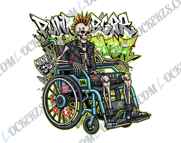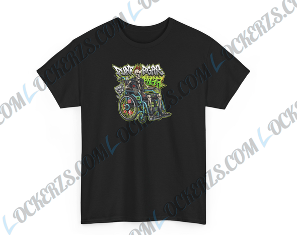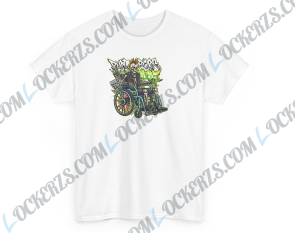 A raw, authentic depiction of punk rock spirit, no matter the wheels. This design captures the essence of defiance and individuality with a punk icon in a wheelchair, embodying unfiltered attitude and unwavering strength. This isn’t just a shirt; it’s a mosh pit on wheels.