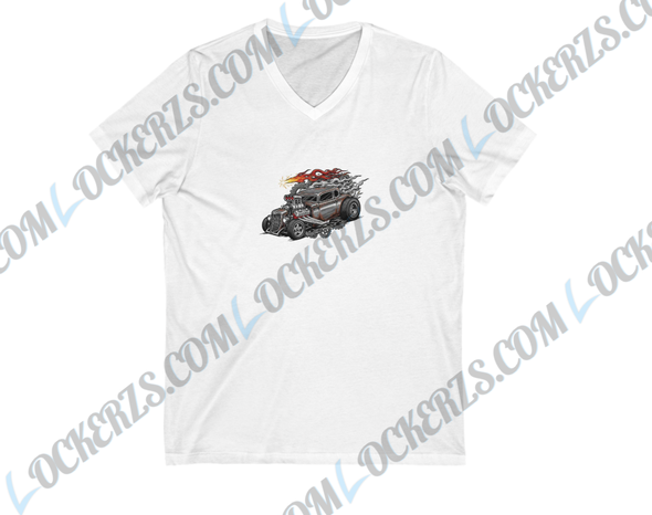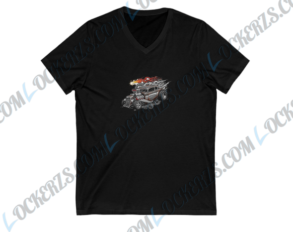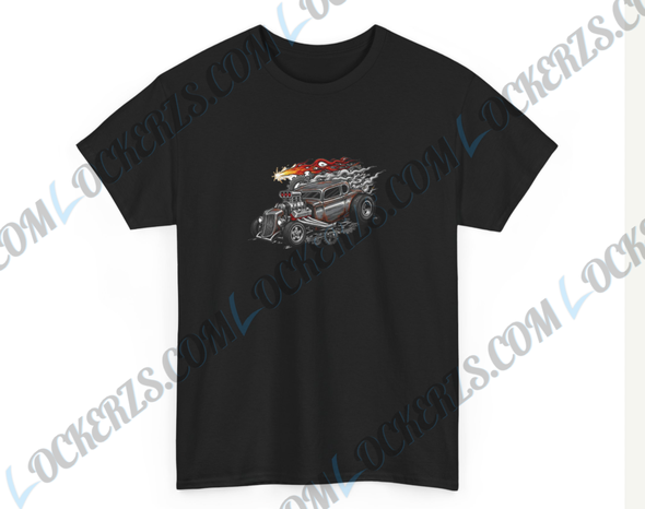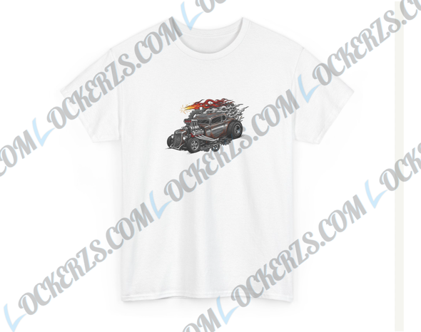Unleash your passion for classic cars and hot rods with this dynamic t-shirt. It features a powerful illustration of a vintage hot rod engulfed in vibrant red and orange flames, complete with visible engine details and a sense of high-speed motion. This tee is perfect for car enthusiasts, hot rod lovers, and anyone who appreciates a cool, eye-catching graphic.