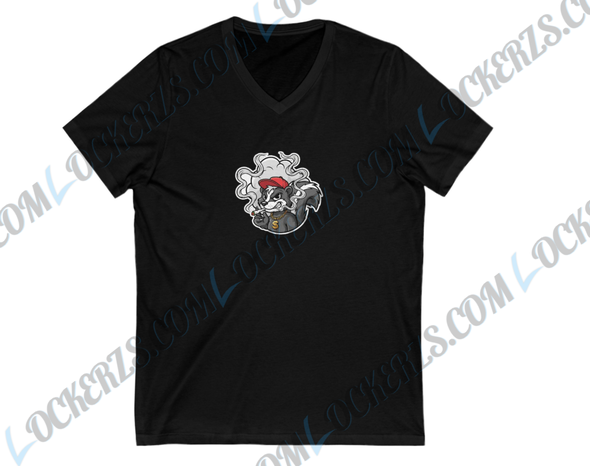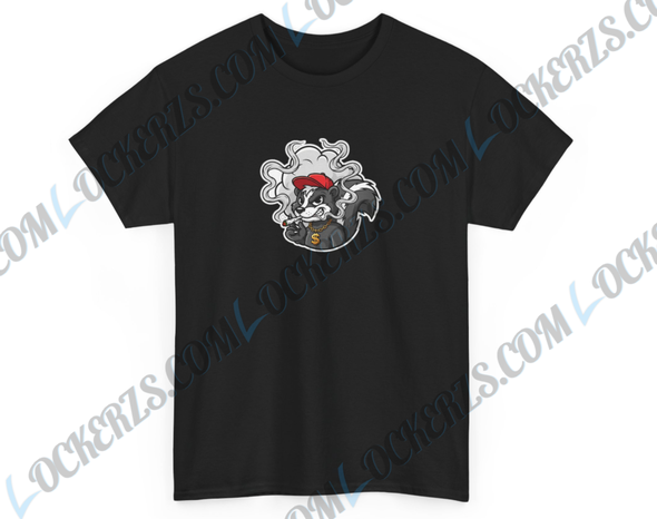 Introducing the “Skunky Vibes” T-shirt, a cool and quirky tee for those who appreciate a bit of playful edge in their style. This black T-shirt features a bold cartoon graphic of a skunk sporting a red backwards cap, sunglasses, and a gold chain with a dollar sign pendant, casually exhaling a cloud of smoke. It’s a fun, eye-catching design that’s sure to spark conversations and showcase your unique personality.
