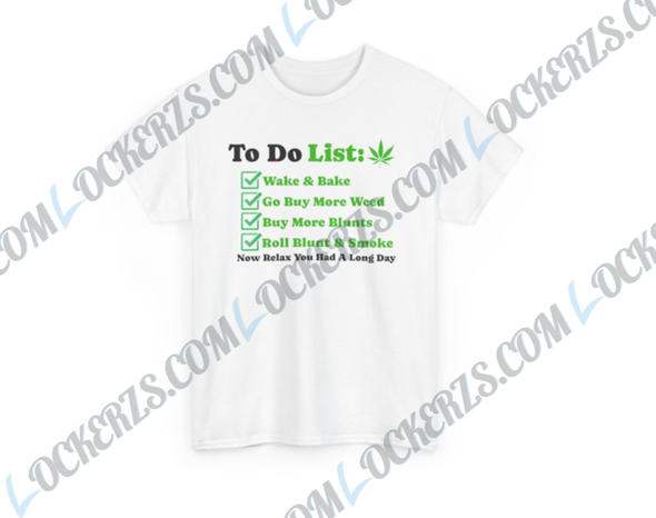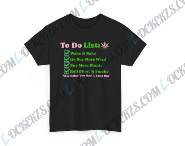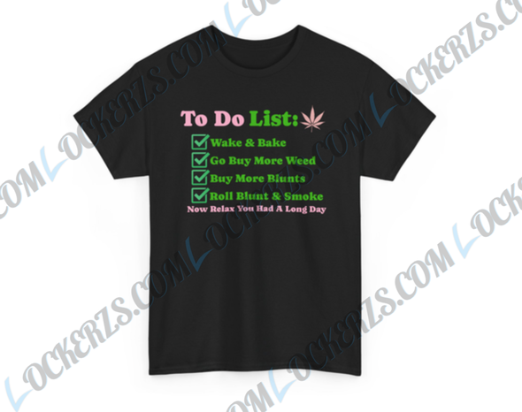 Get your priorities straight with this “Smoke Weed To-Do List” tee! Featuring a humorous checklist of essential tasks (mostly involving cannabis), it’s the perfect shirt for anyone who knows how to relax and enjoy the green.
