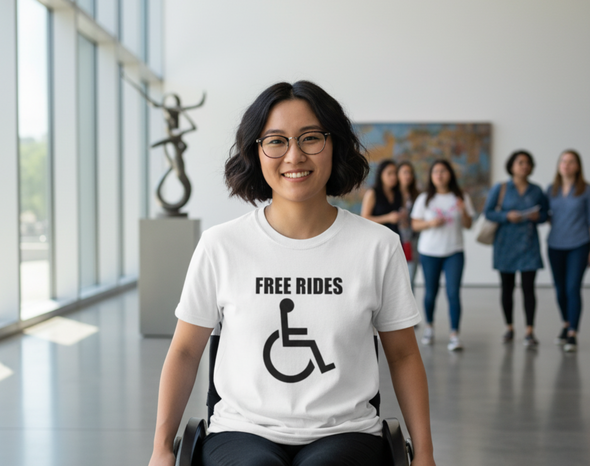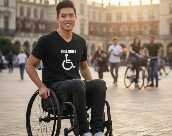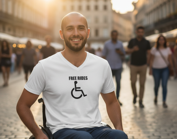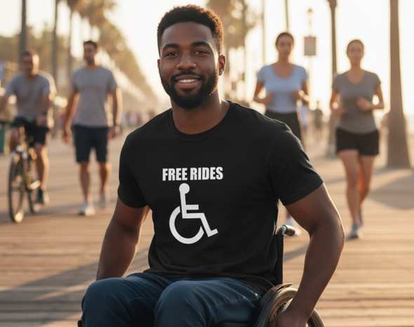 Looking for a deal? This shirt promises ‘FREE RIDES’ with a cheeky graphic of a wheelchair. It’s the perfect blend of dark humor and a playful jab at assumptions. Wear it and watch the double-takes – just don’t be surprised if no one actually asks for a lift!