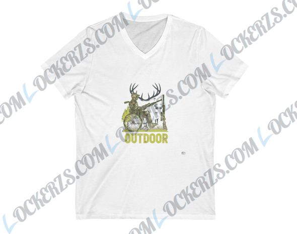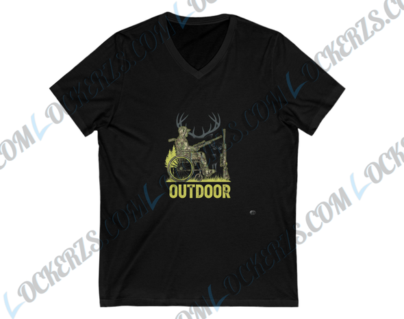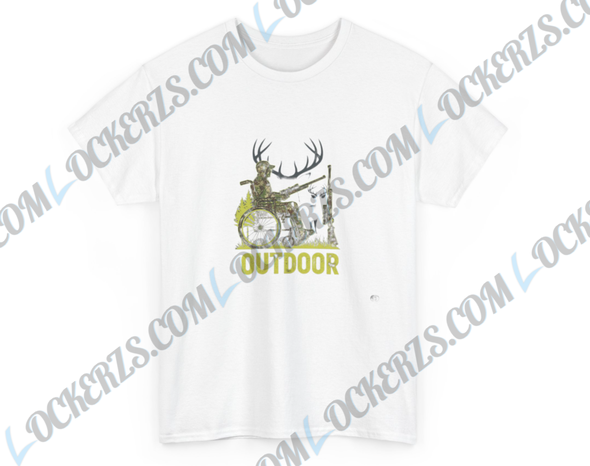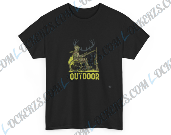 Unleash Your Inner Hunter. This tee celebrates the unyielding spirit of the outdoorsman, no matter how he navigates the wild. Featuring a determined hunter in his wheelchair, this shirt is a powerful statement that OUTDOOR adventure knows no bounds. Made from super-soft cotton, it’s perfect for your next trek, whether it’s deep in the woods or just conquering your day.
