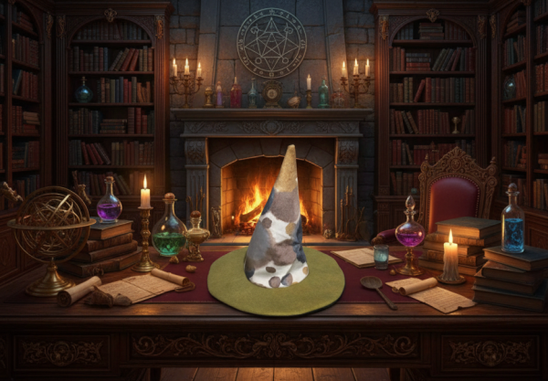 Simply flip the brim over the cone to instantly switch your style! The Chameleon Coven Hat adapts to your magic—from dark and traditional to bright and unconventional—at a moment’s notice.